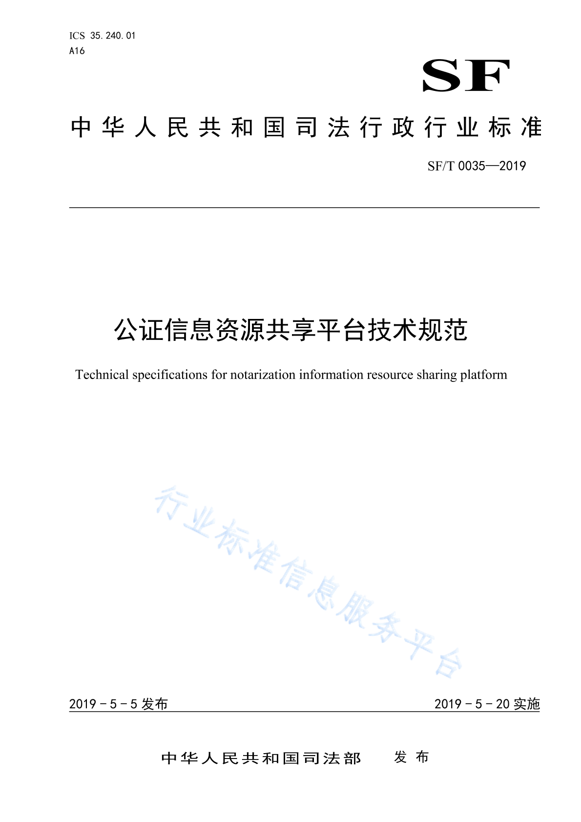 SF/T 0035-2019 公证信息资源共享平台技术规范
