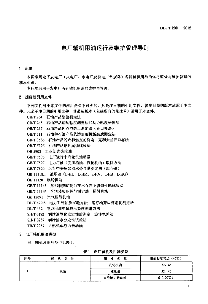 DL/T 290-2012 电厂辅机用油运行及维护管理导则