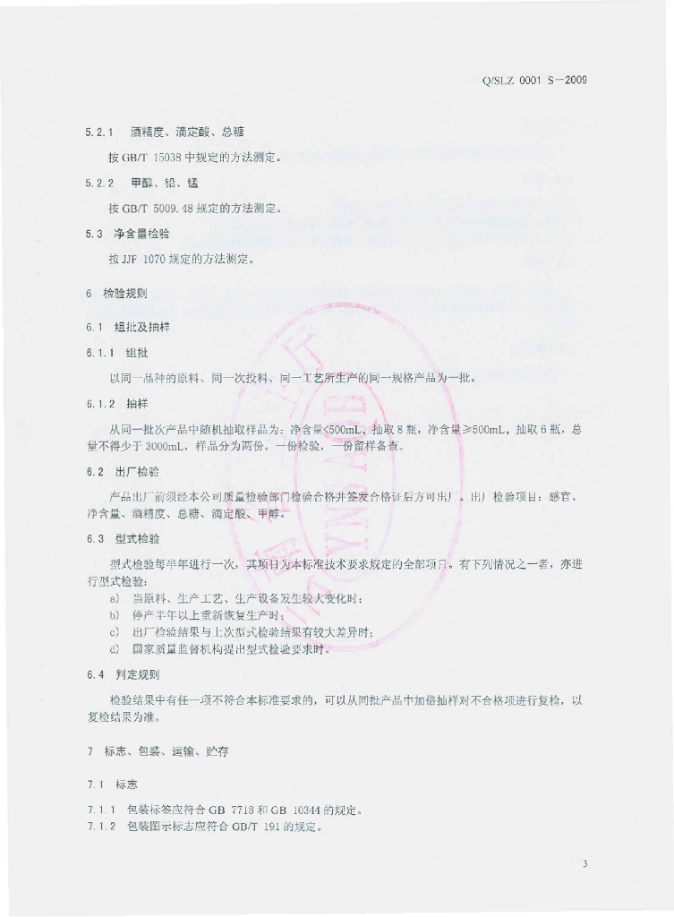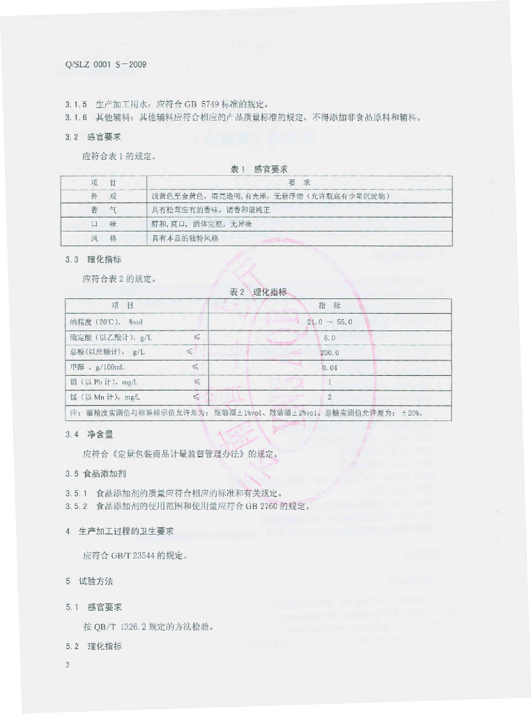 Q/SLZ 0001S-2009 松萁酒(配制酒)