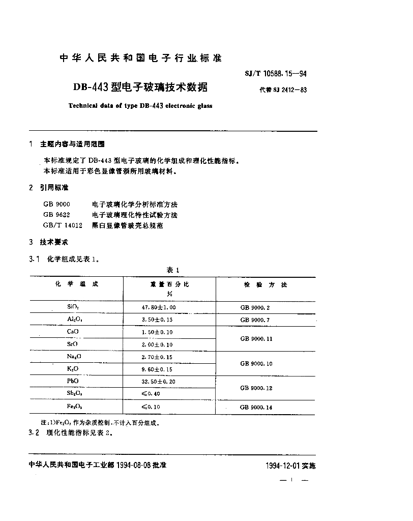 SJ/T 10588.15-1994 DB-443型电子玻璃技术数据