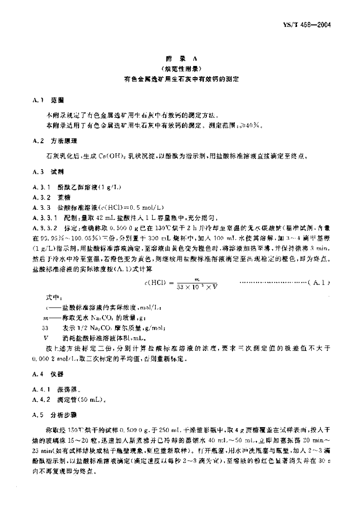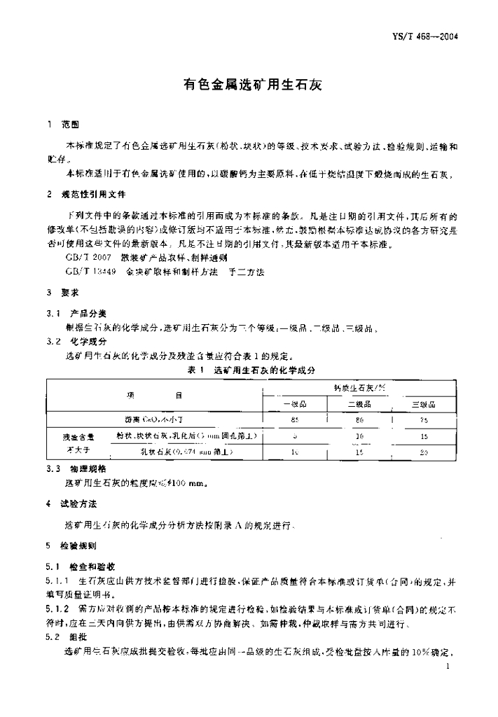 YS/T 468-2004 有色金属选矿用生石灰