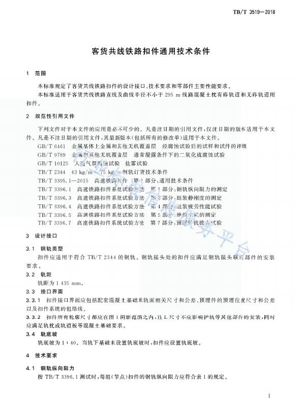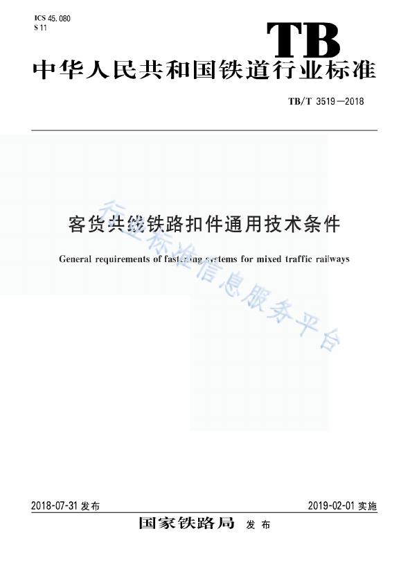 TB/T 3519-2018 客货共线铁路扣件通用技术条件