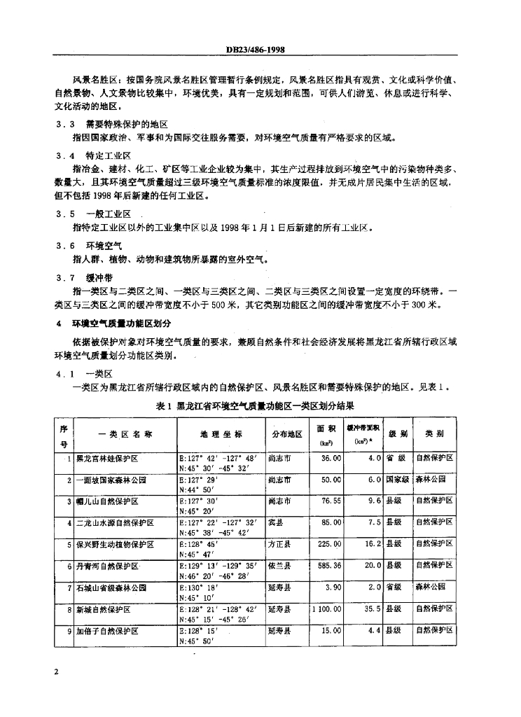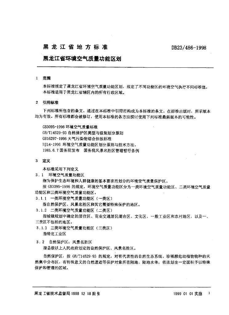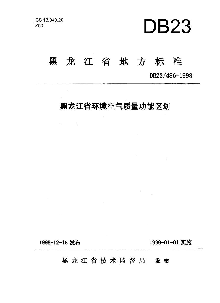 DB23/ 486-1998 黑龙江省环境空气质量功能区划