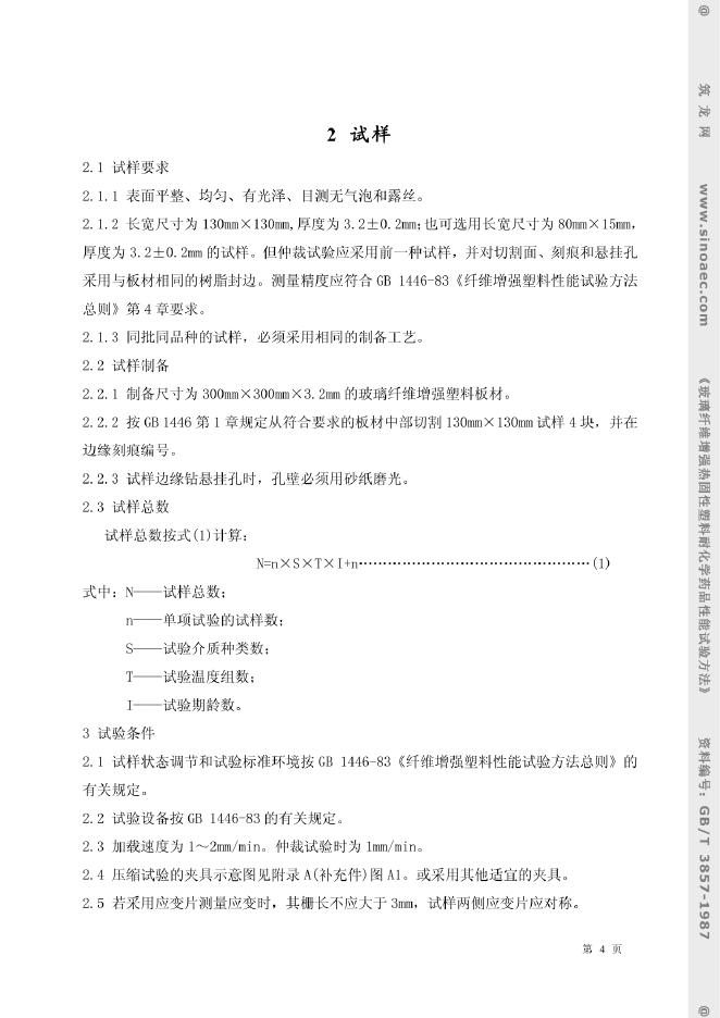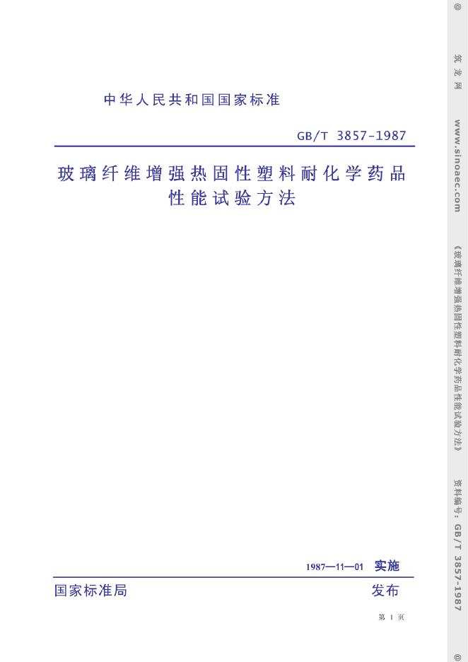 GB/T 3857-1987 玻璃纤维增强热固性塑料耐化学药品性能试验方法