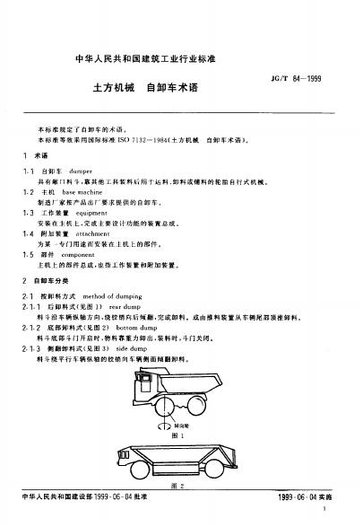 JG/T 84-1999 土方机械 自卸车术语