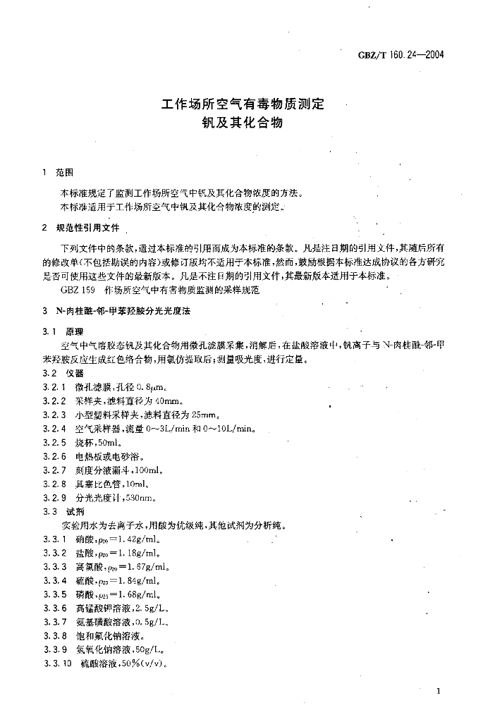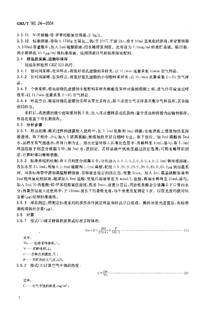 GBZ/T 160.24-2004 工作场所空气有毒物质测定 钒及其化合物
