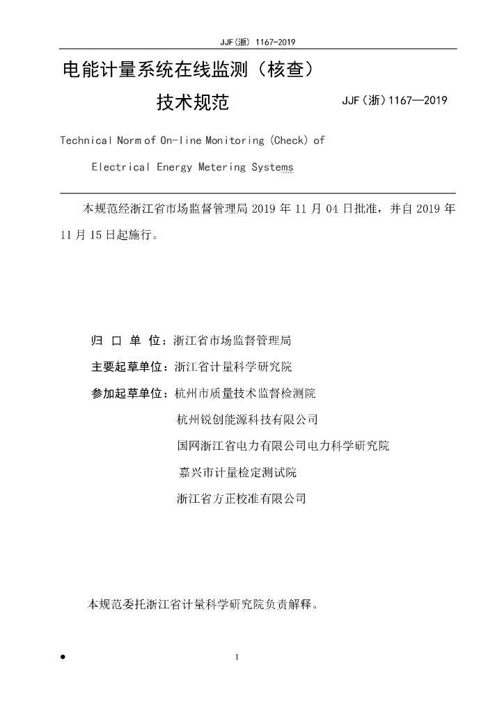 浙江省计量科学研究院、杭州市质量技术监督检测院、杭州锐创能源科技有限公司、国网浙江省电力有限公司电力科学研究院、嘉兴市计量检定测试院、浙江省方正校准有限公司