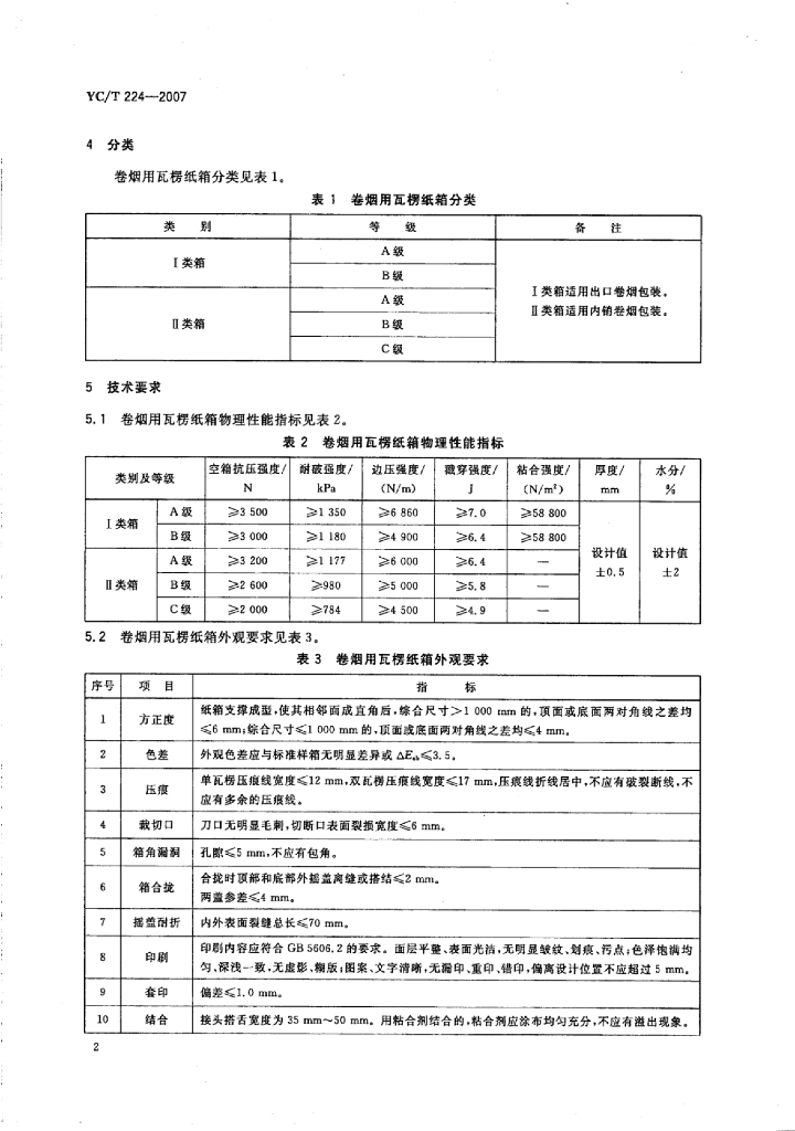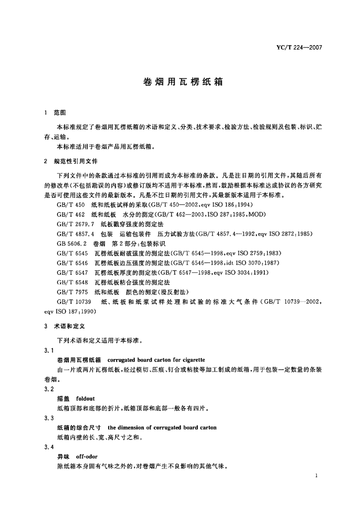 YC/T 224-2007 卷烟用瓦楞纸箱