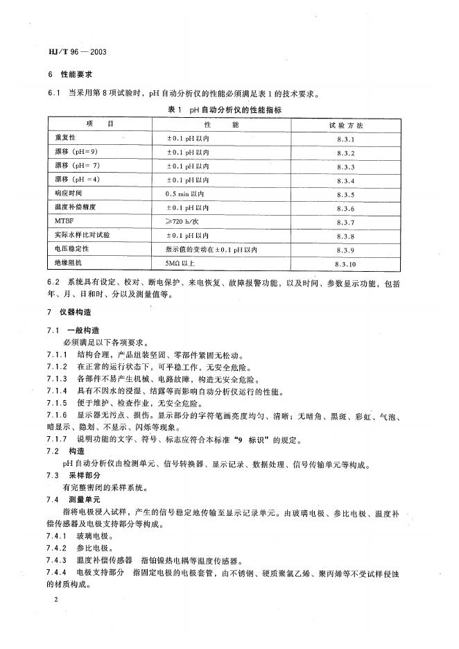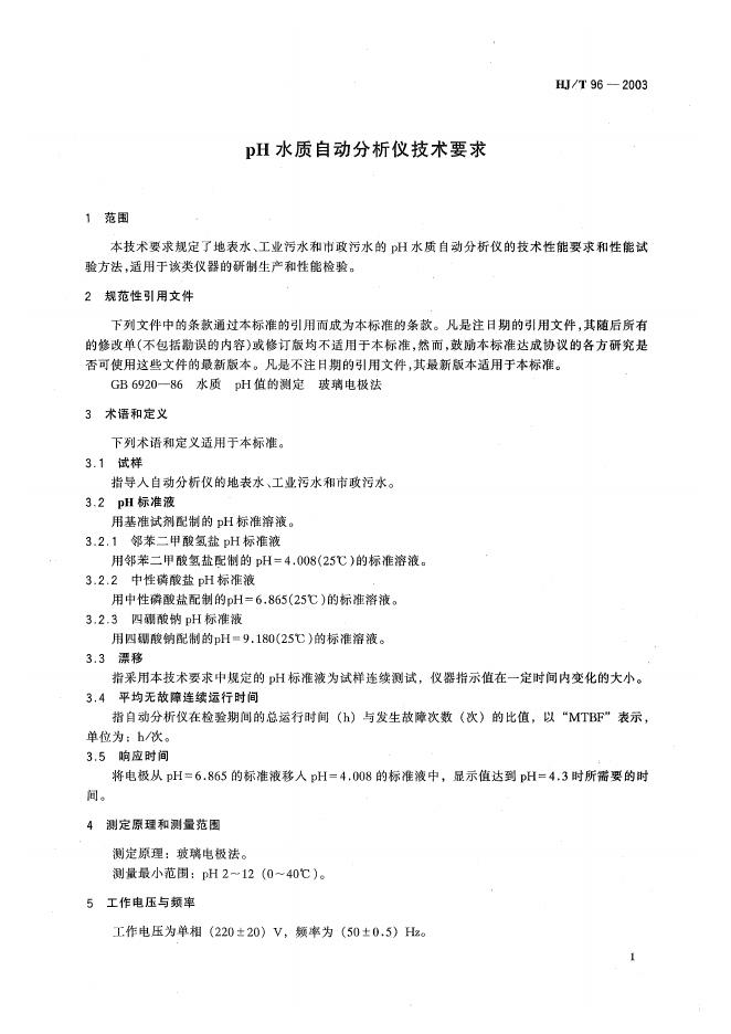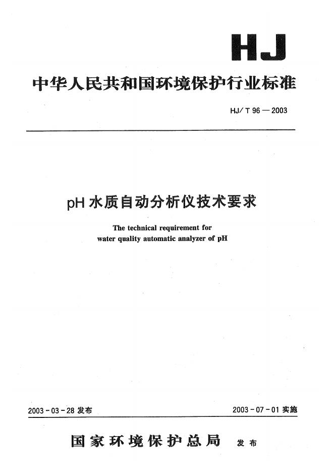 HJ/T 96-2003 pH水质自动分析仪技术要求
