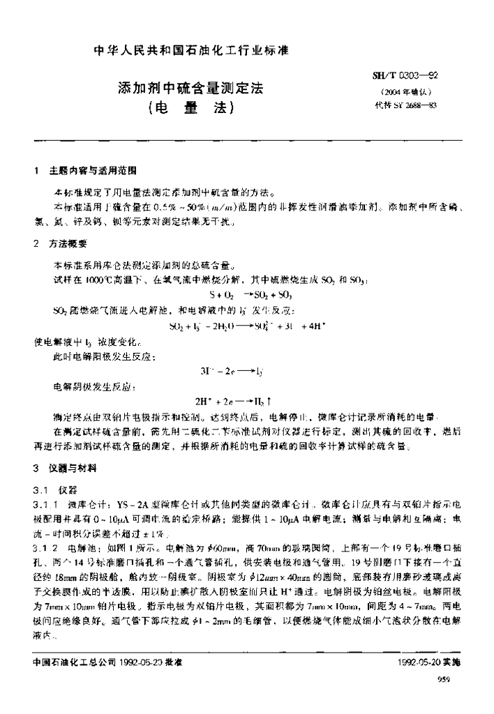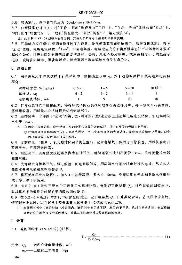 SH/T 0303-1992 添加剂中硫含量测定法
