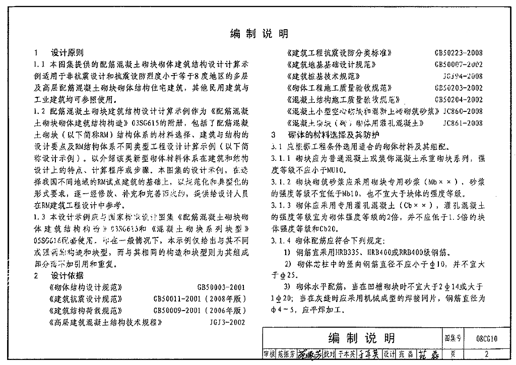 08CG10 配筋混凝土砌块砌体建筑结构设计计算示例参考图集