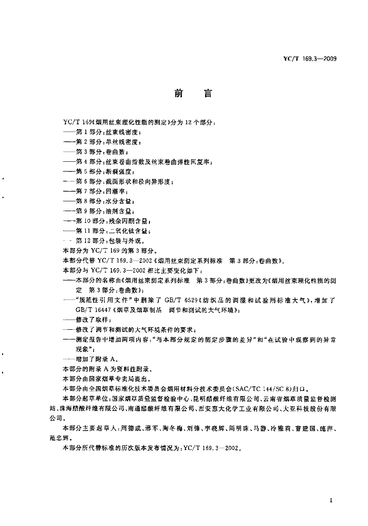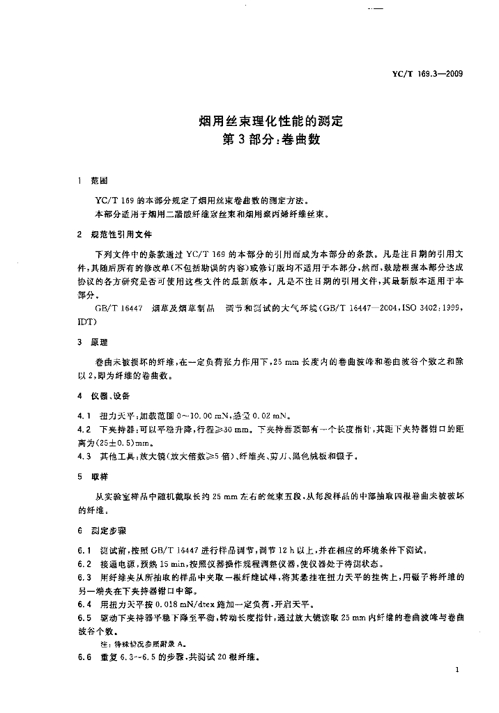 YC/T 169.3-2009 烟用丝束理化性能的测定 第3部分:卷曲数