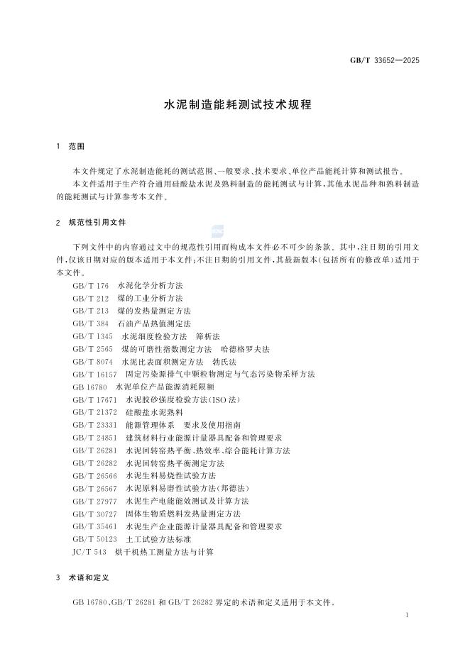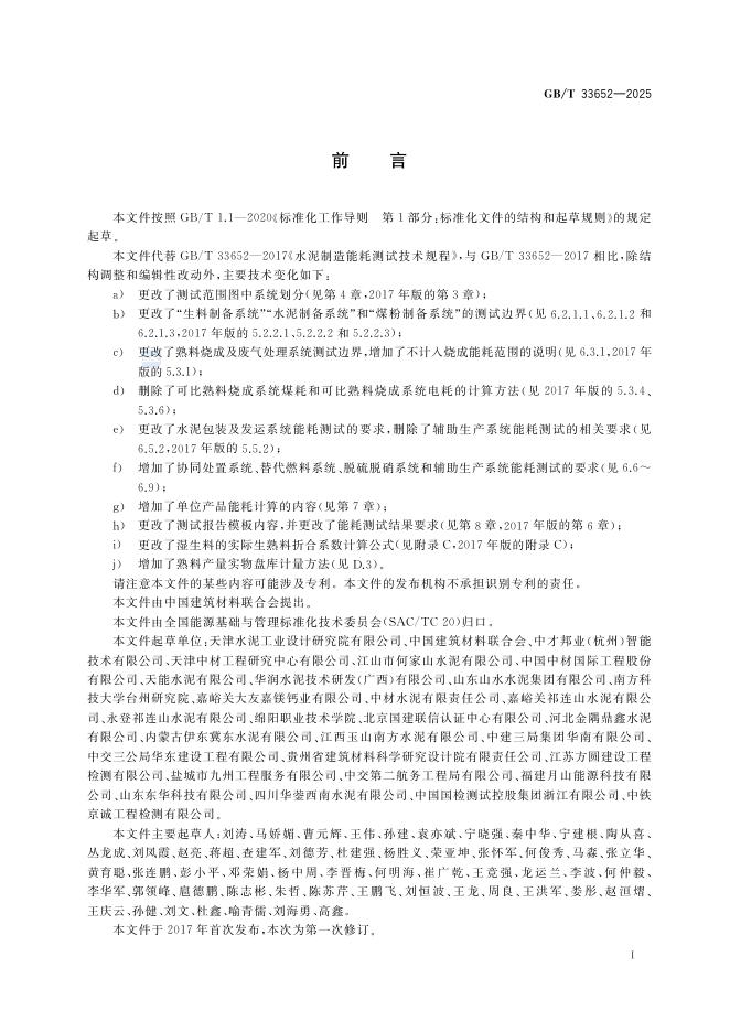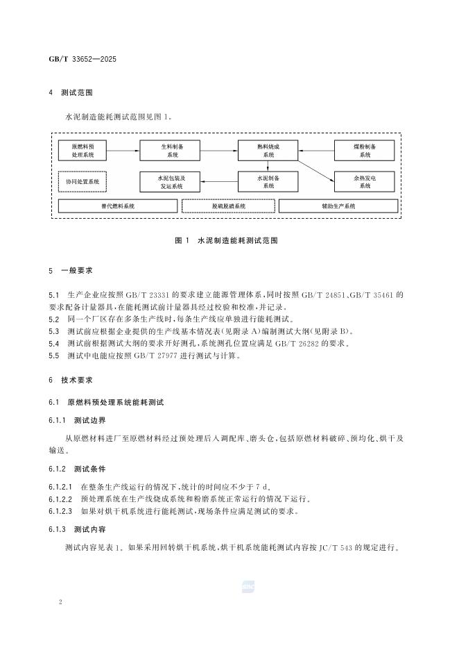 GB/T 33652-2025 水泥制造能耗测试技术规程