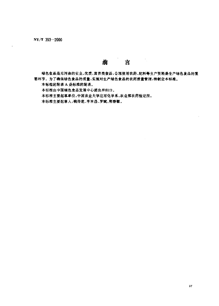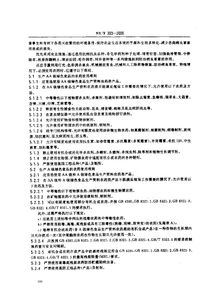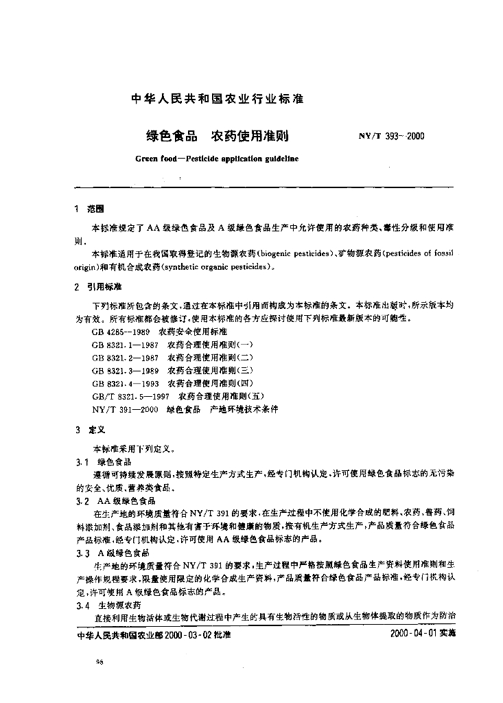 NY/T 393-2000 绿色食品 农药使用准则