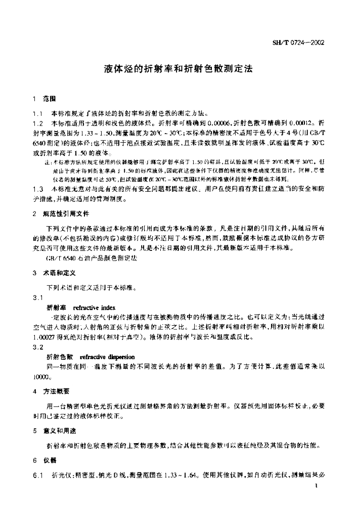 SH/T 0724-2002 液体烃的折射率和折射色散测定法