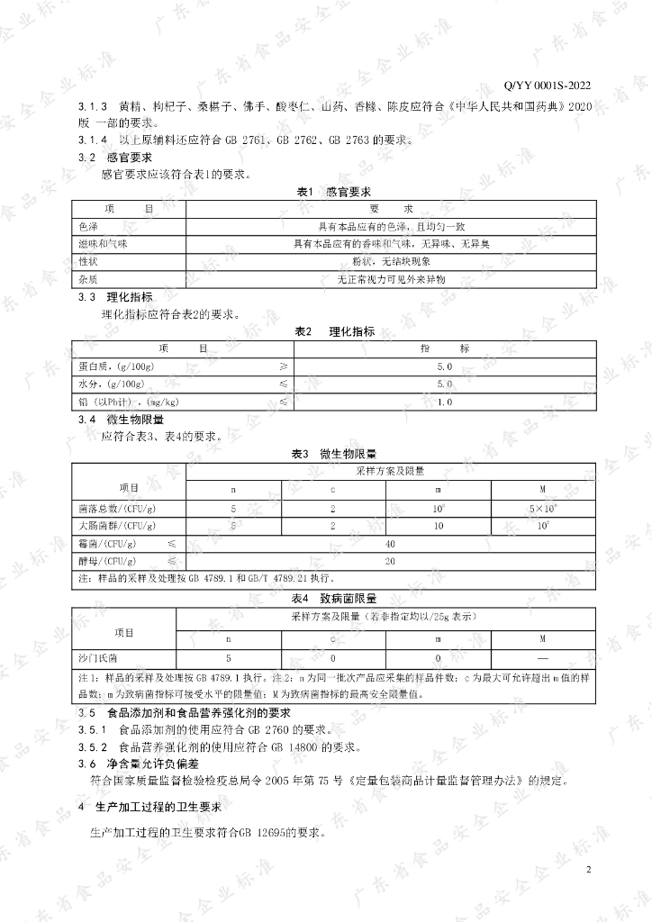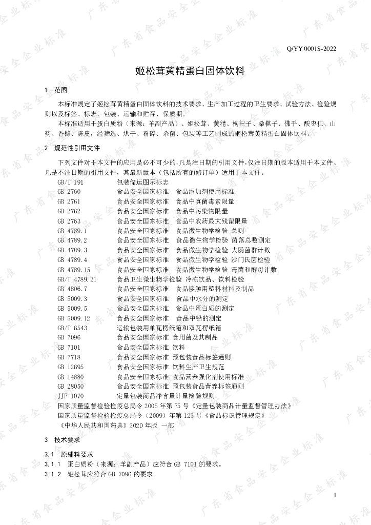 Q/YY 0001S-2022 姬松茸黄精蛋白固体饮料