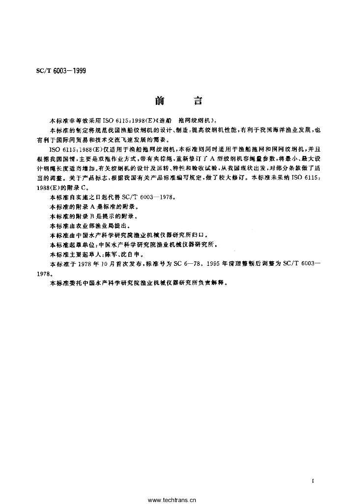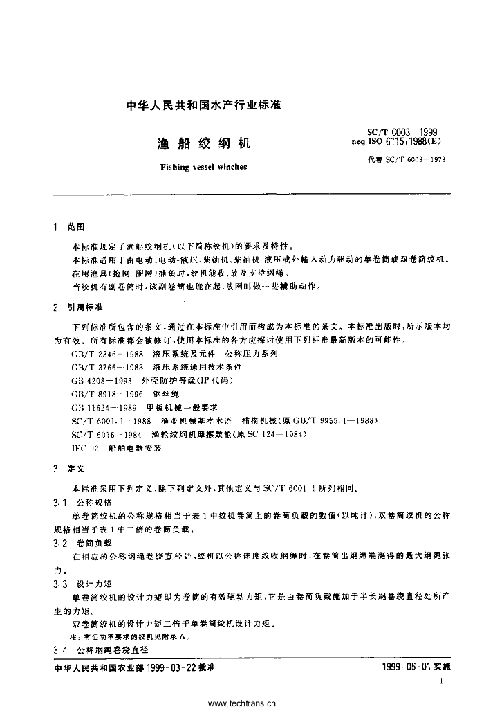 SC/T 6003-1999 渔船绞纲机