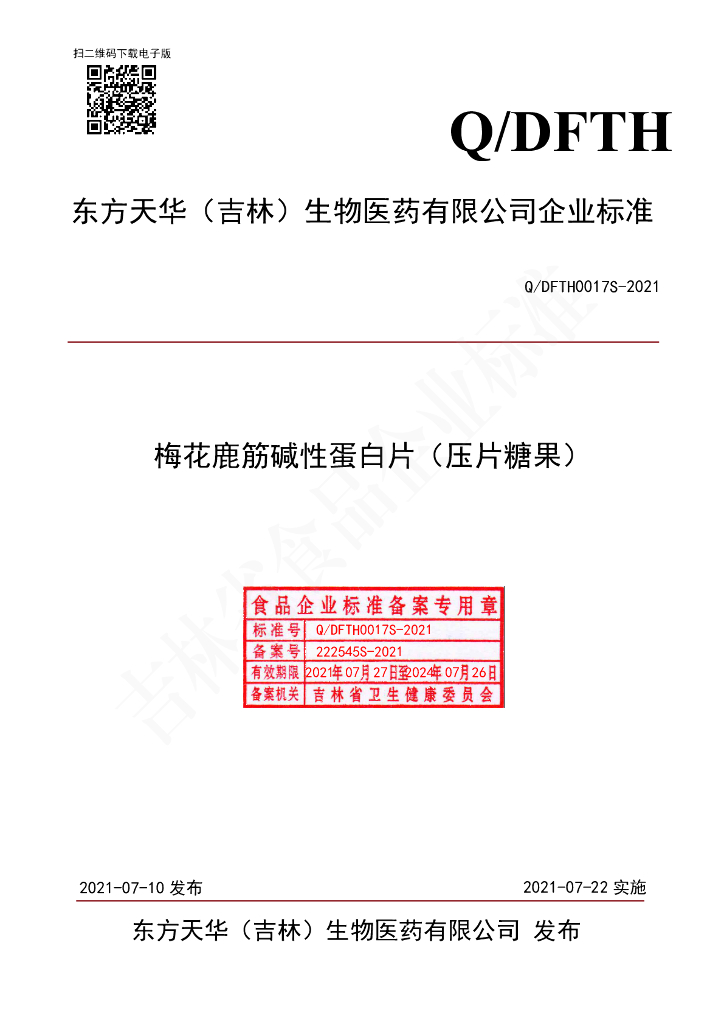 Q/DFTH 0017S-2021 梅花鹿筋碱性蛋白片(压片糖果)