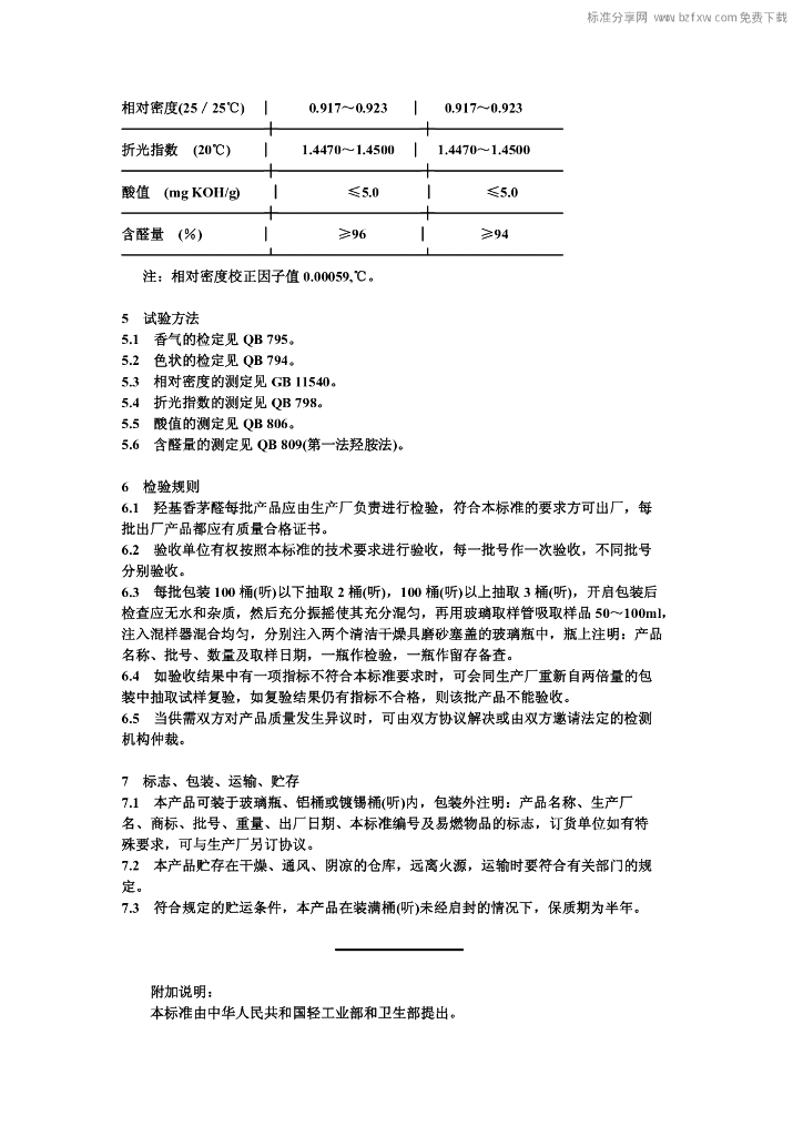 QB 1467-1992 食品添加剂羟基香茅醛