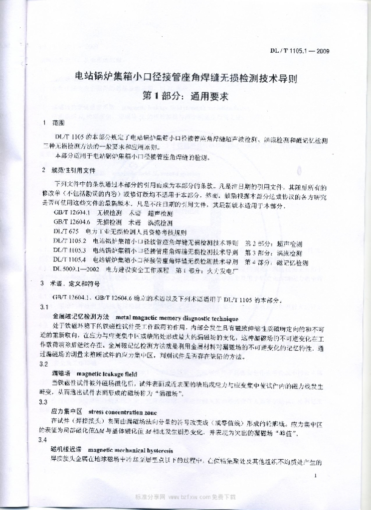 DL/T 1105.1-2010 电站锅炉集箱小口径接管座角焊缝 无损检测技术导则 第1部分:通用要求