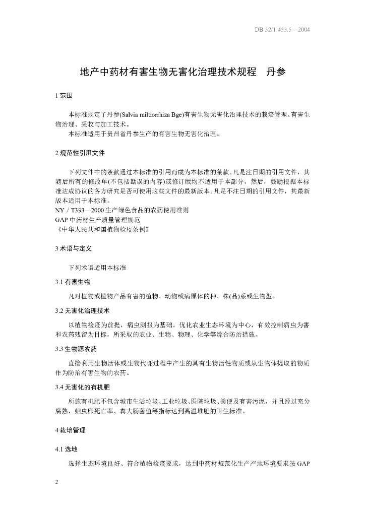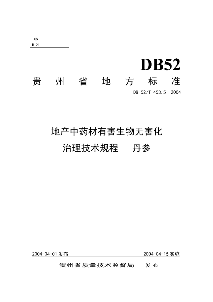 DB52/T 453.5-2004 地产中药材有害生物无害化治理技术规程 丹参