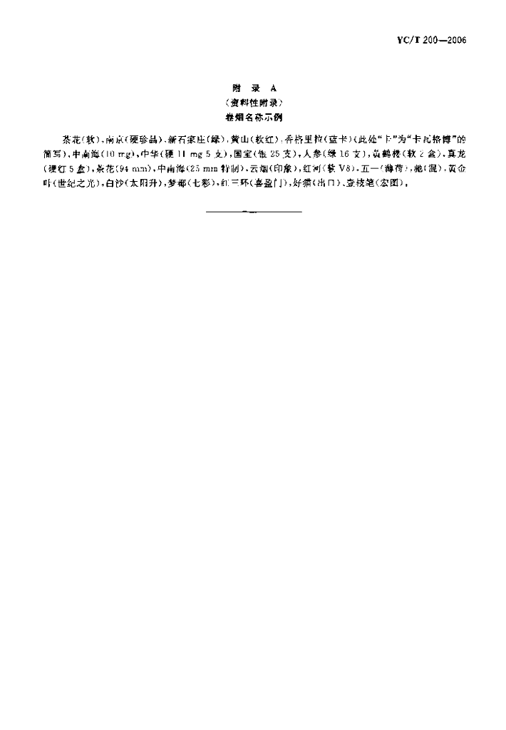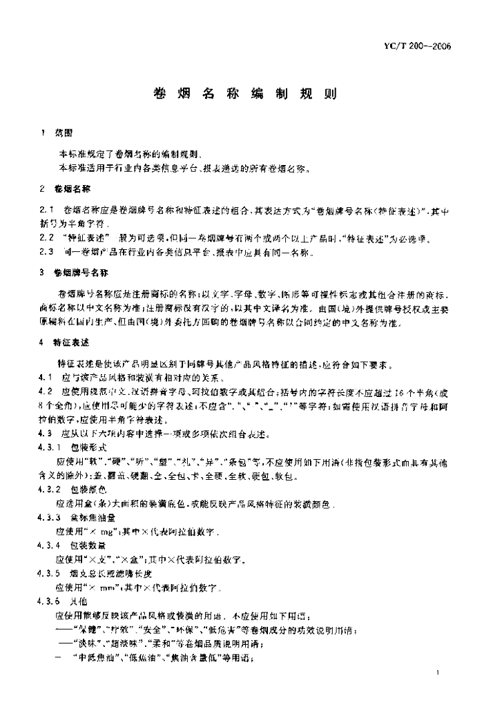 YC/T 200-2006 卷烟名称编制规则