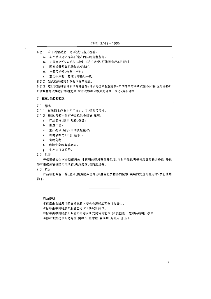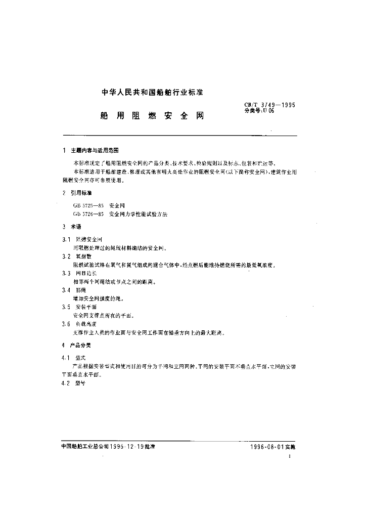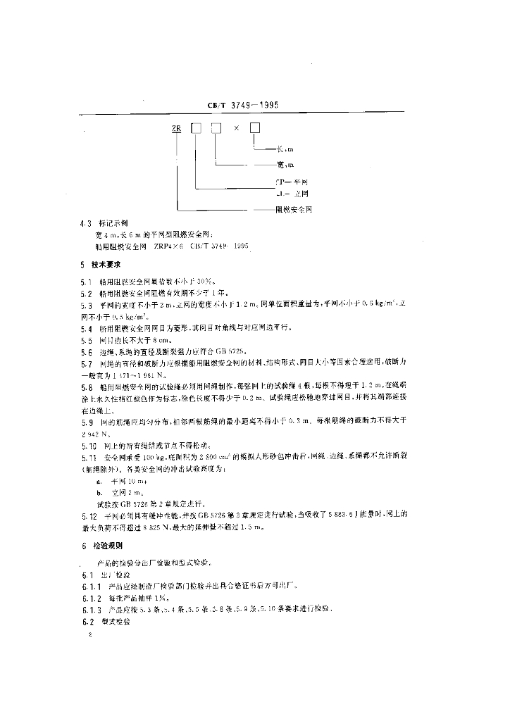 CB/T 3749-1995 船用阻燃安全网