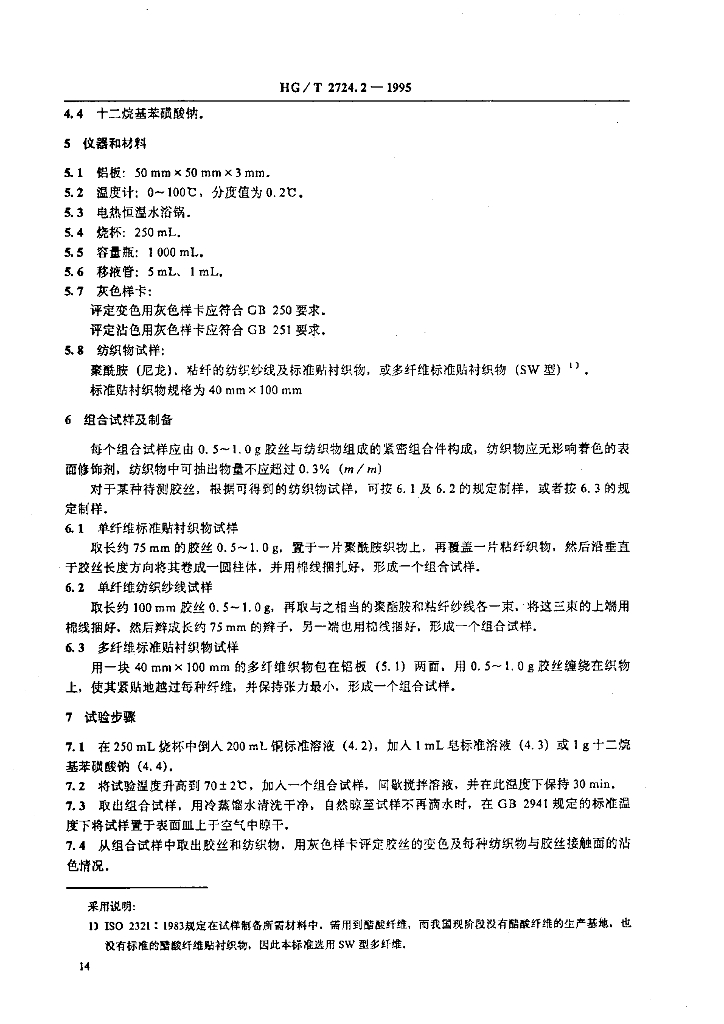 HG/T 2724.2-1995 橡胶胶丝试验方法 洗涤期间耐铜污染性能的测定