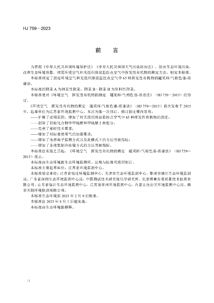 江苏省环境监测中心、江苏省宿迁环境监测中心、天津市生态环境监测中心、泰州市靖江生态环境监测站、广东省深圳生态环境监测中心站、中国测试技术研究院化学研究所、北京博赛泰克质量技术检测有限公司、山东省临沂生态环境监测中心、江苏省常州环境监测中心、内蒙古自治区环境监测中心站、南京天朗环境检测有限公司