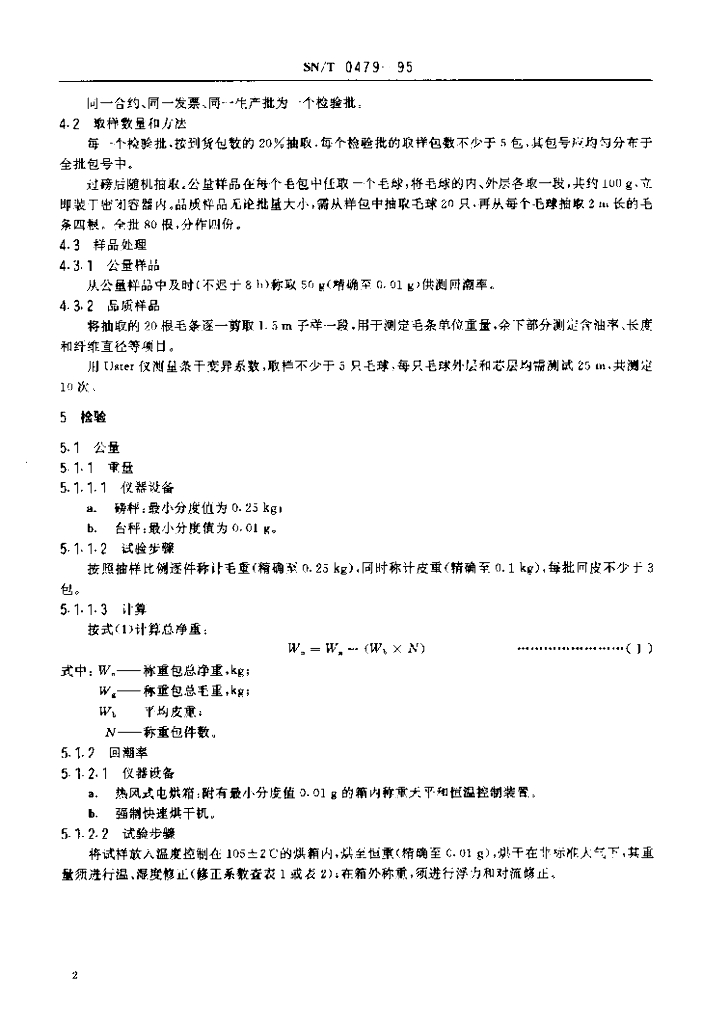 SN/T 0479-1995 进出口羊毛条检验规程