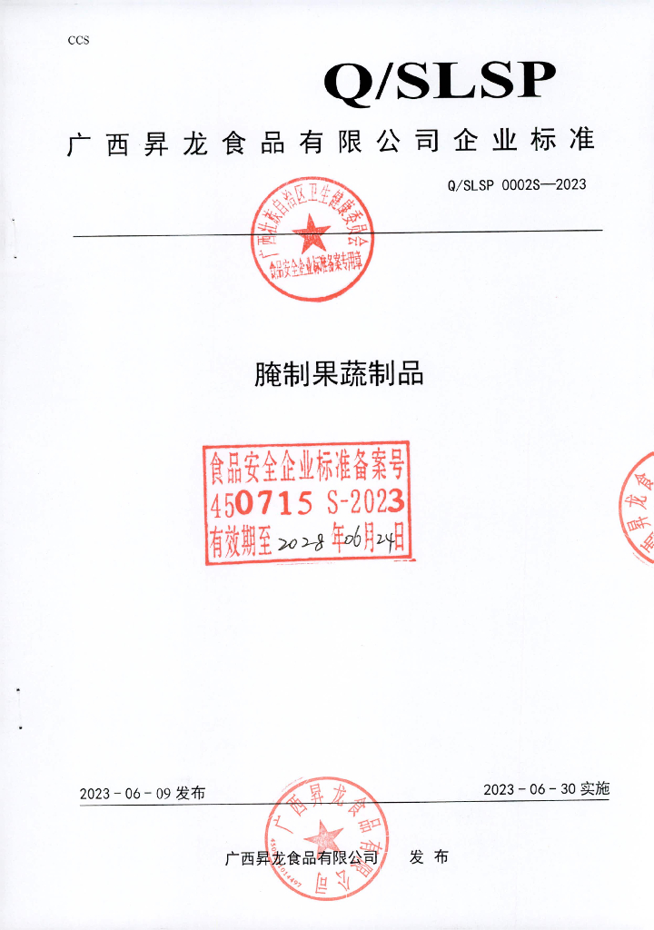 Q/SLSP 0002S-2023 腌制果蔬制品