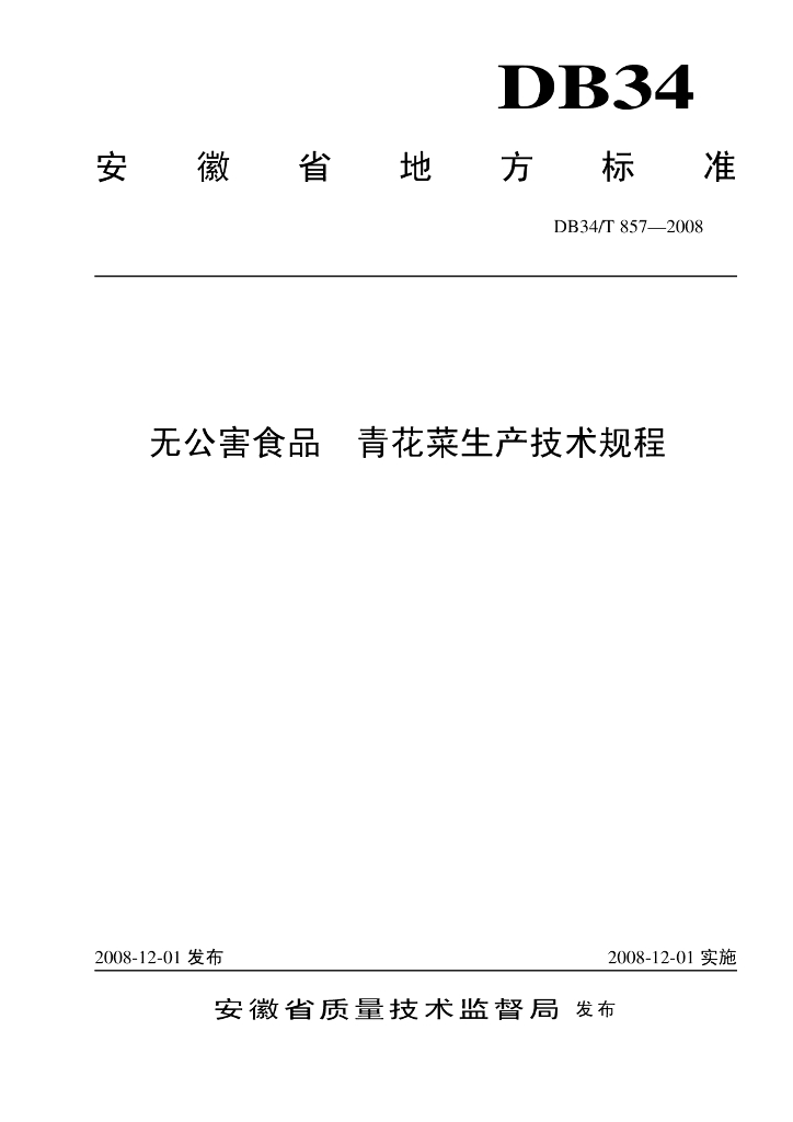 DB34/T 857-2008 无公害食品 青花菜生产技术规程