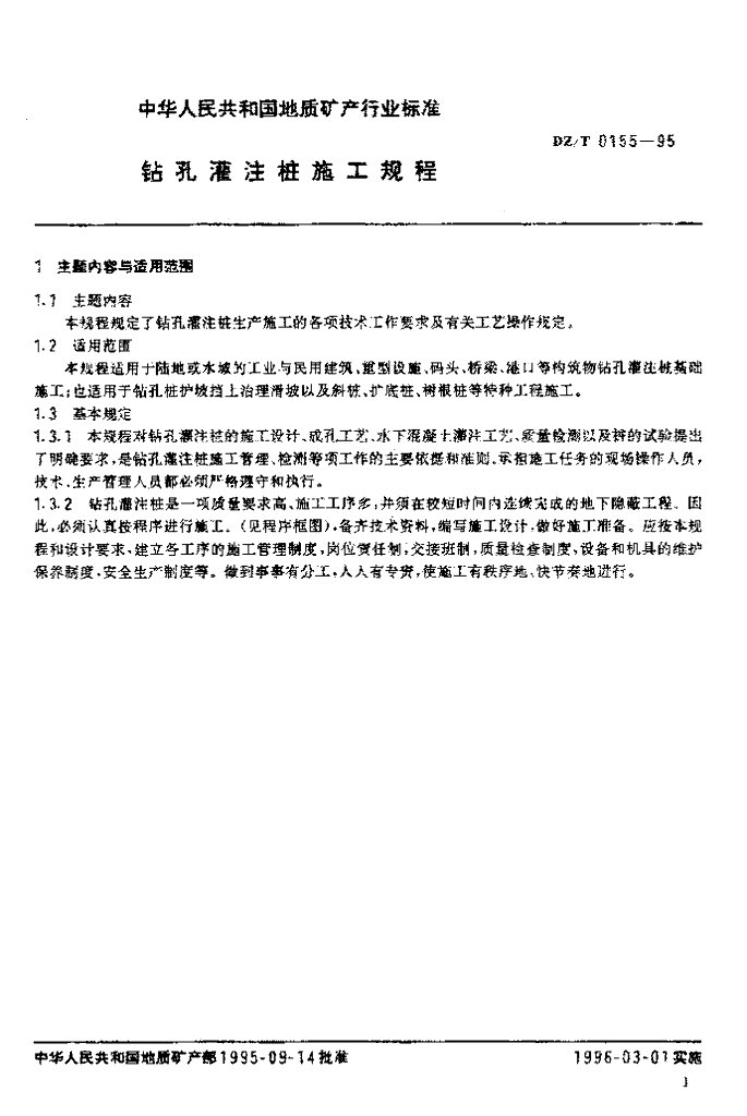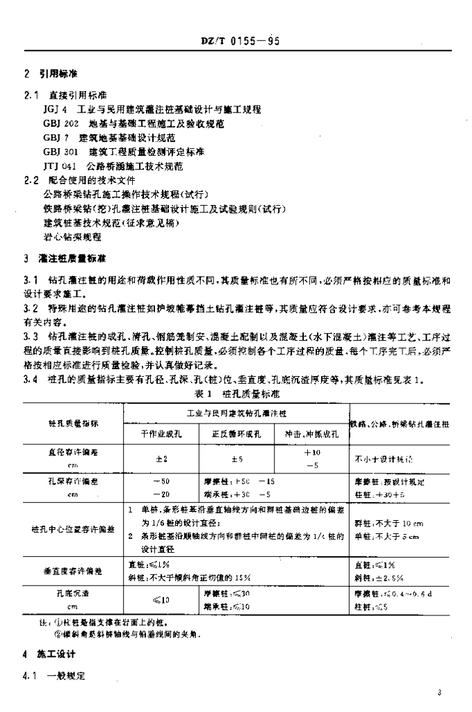 DZ/T 0155-1995 钻孔灌注桩施工规程