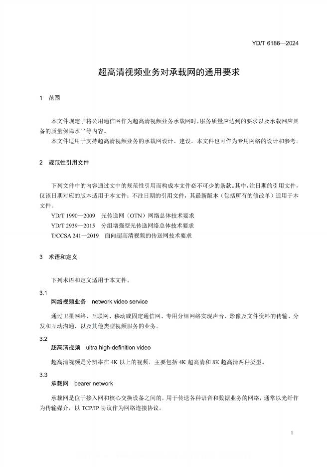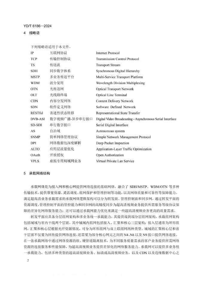 YD/T 6186-2024 超高清视频业务对承载网的通用要求