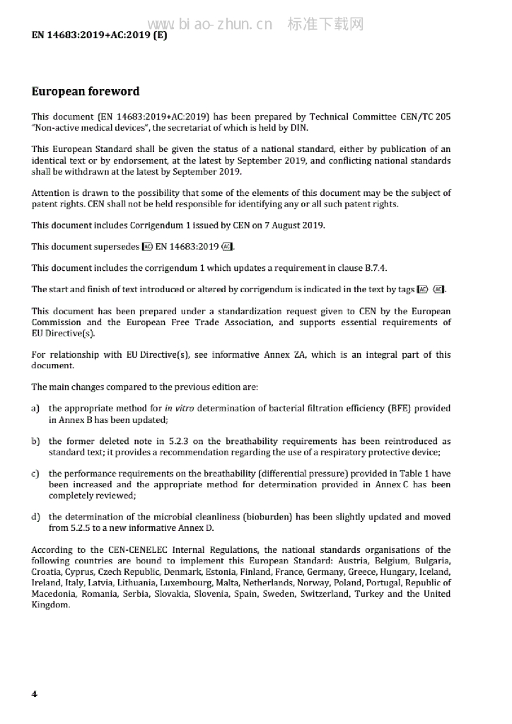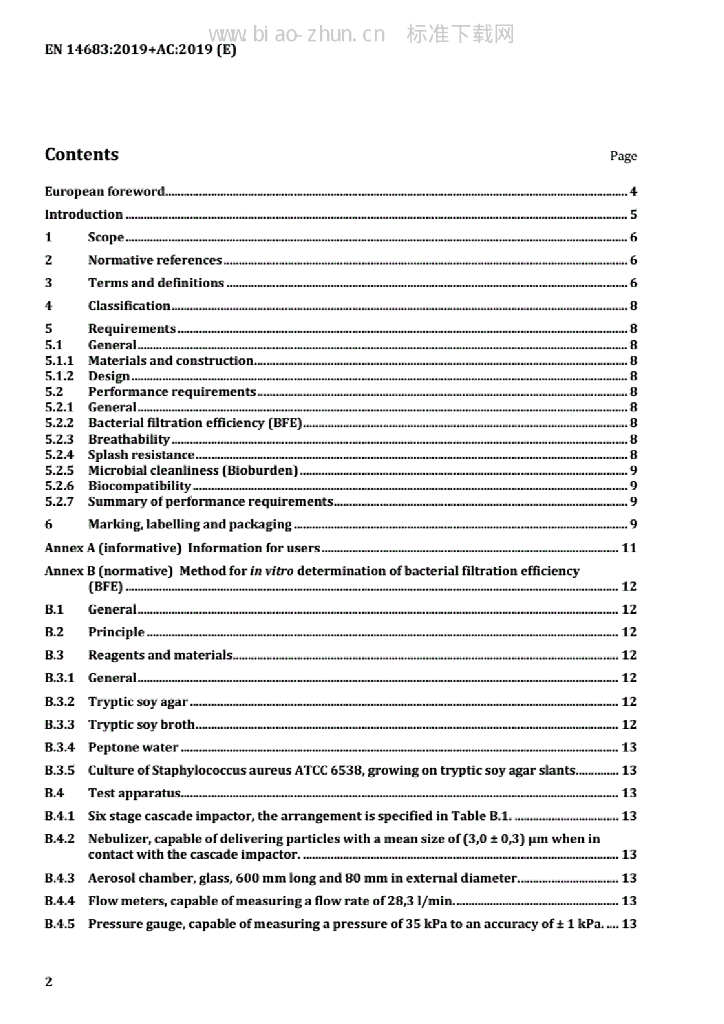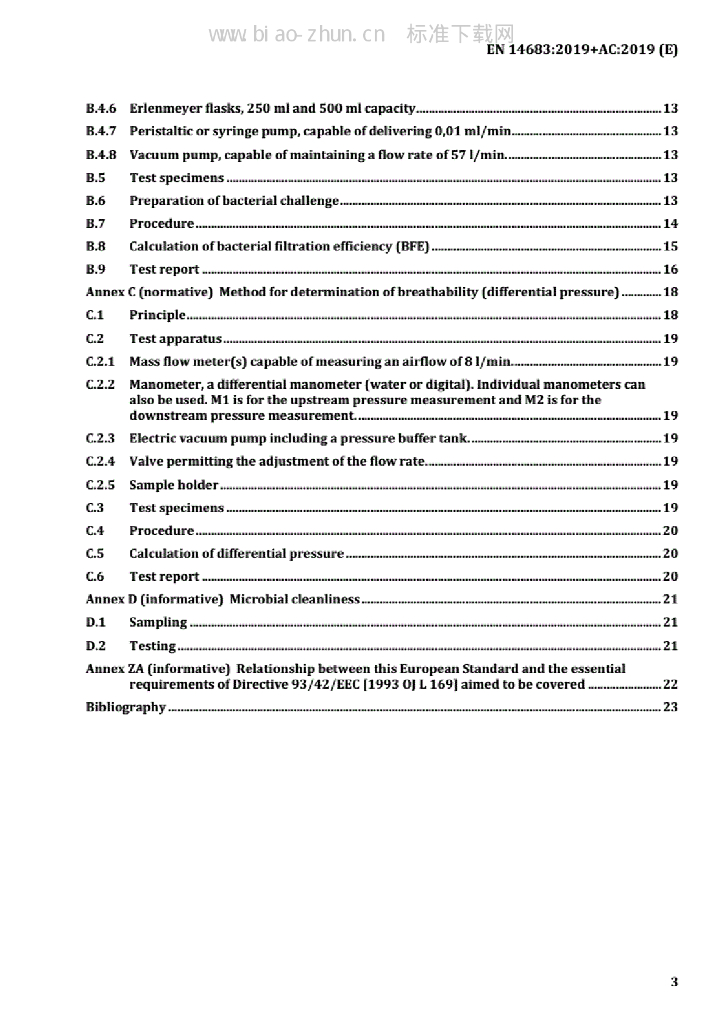 EN 14683:2019+AC 医用口罩 要求和试验方法