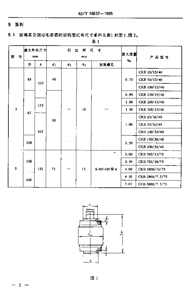 SJ/T 10637-1995 真空电容器结构形式和尺寸系列
