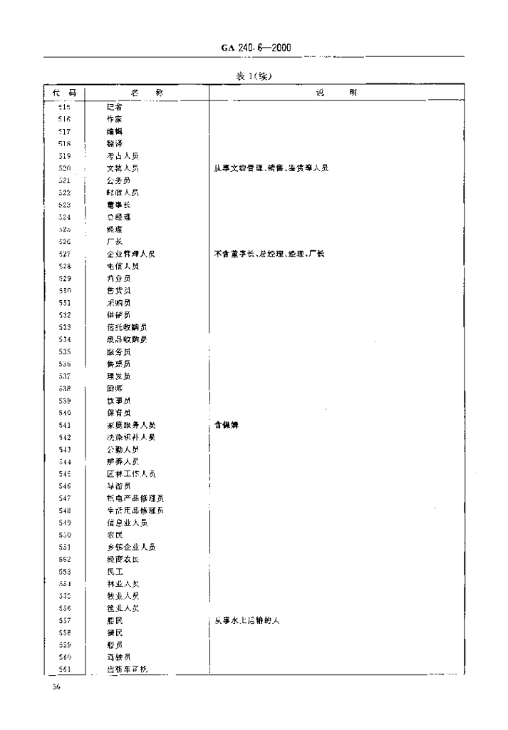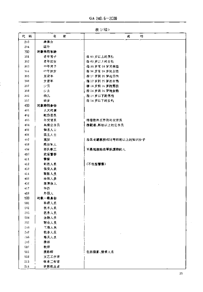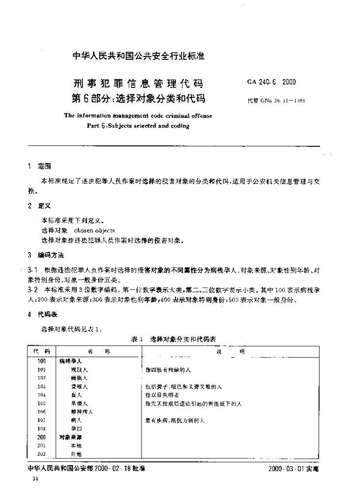 GA 240.6-2000 刑事犯罪信息管理代码 第6部分:选择对象分类和代码