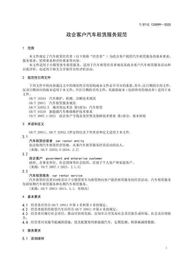 T/STIC 120099-2025 政企客户汽车租赁服务规范