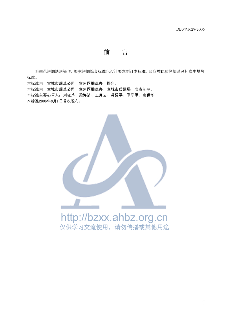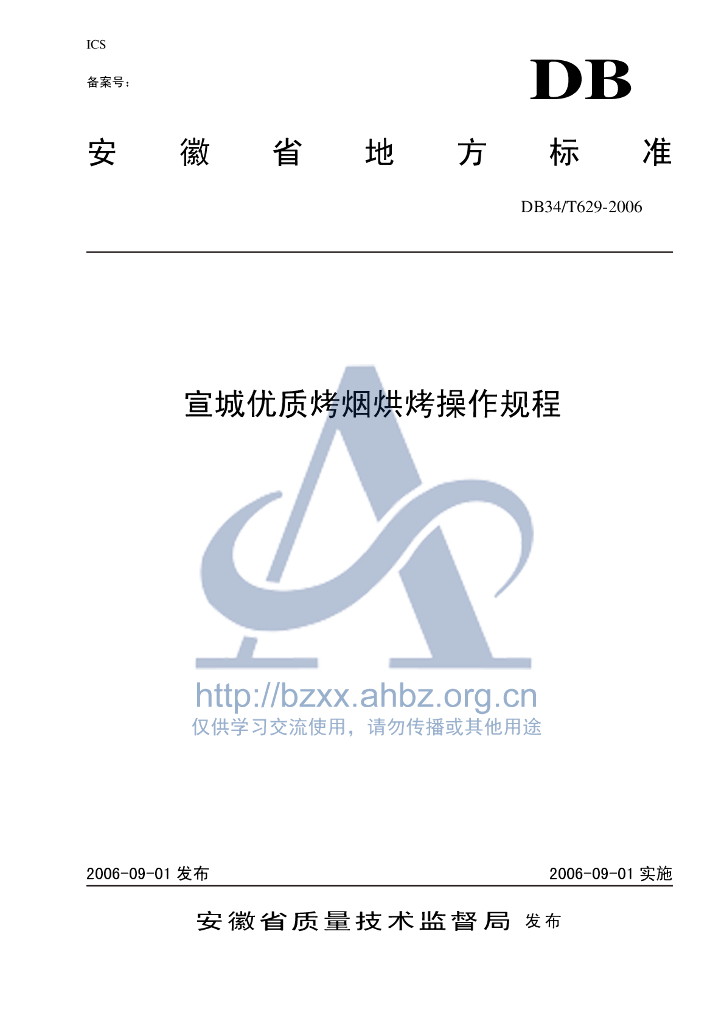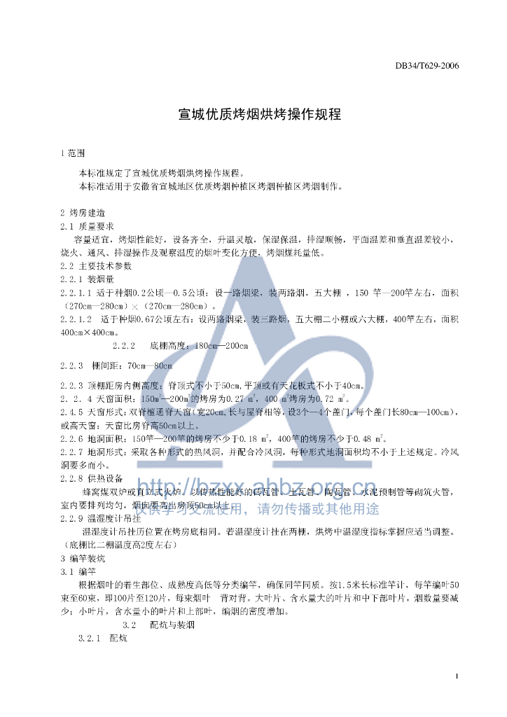 DB34/T 629-2006 宣城优质烤烟烘烤操作规程