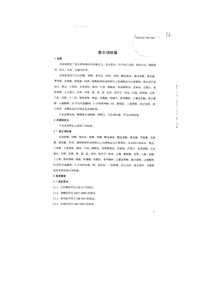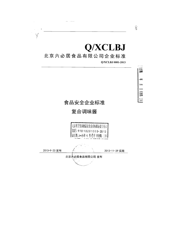Q/XCLBJ 0001-2013 北京六必居食品有限公司 复合调味酱