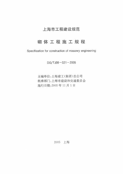 DG/TJ 08-021-2005 砌体工程施工规程