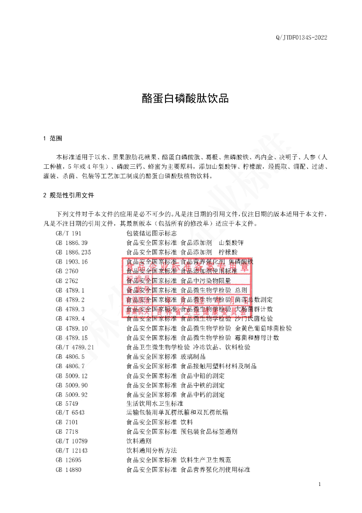 Q/JTDF 0134S-2022 酪蛋白磷酸肽饮品