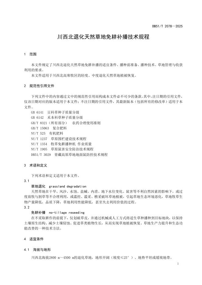 DB51/T 2078-2025 川西北退化天然草地免耕补播技术规程