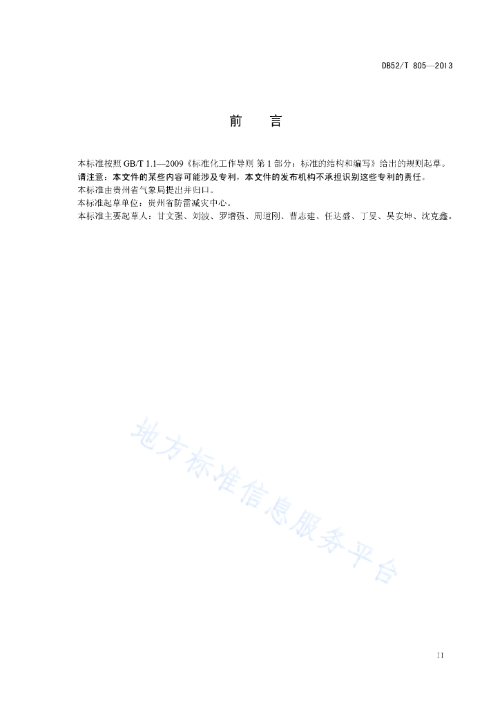 DB52/T 805-2013 贵州省雷电灾害风险评估技术规范