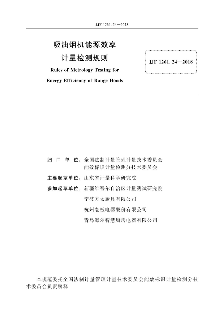 山东省计量科学研究院、新疆维吾尔自治区计量测试研究院、宁波方太厨具有限公司、杭州老板电器股份有限公司、青岛海尔智慧厨房电器有限公司