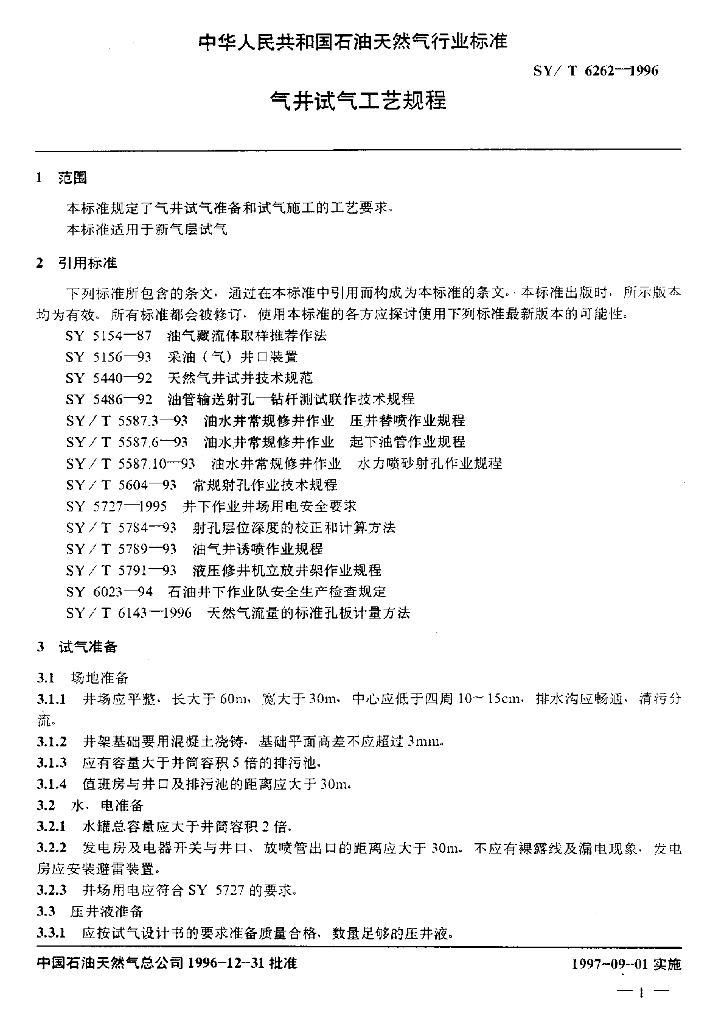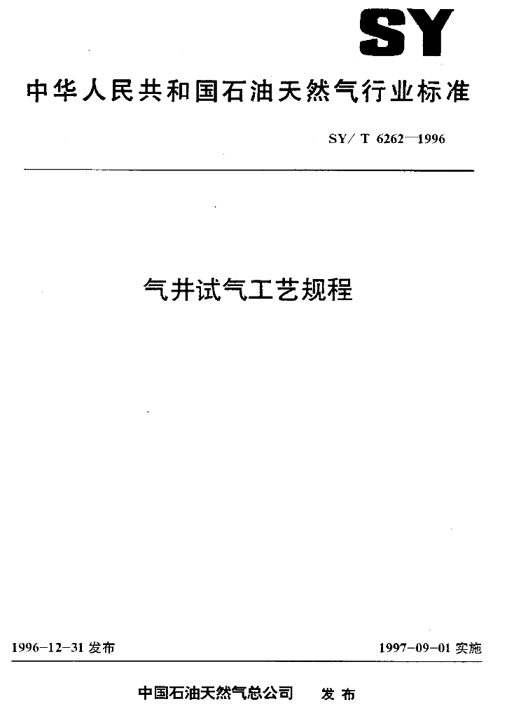 SY/T 6262-1996 气井试气工艺规程