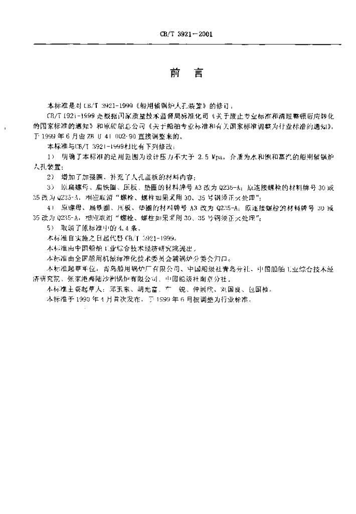 CB/T 3921-2001 船用辅锅炉人孔装置