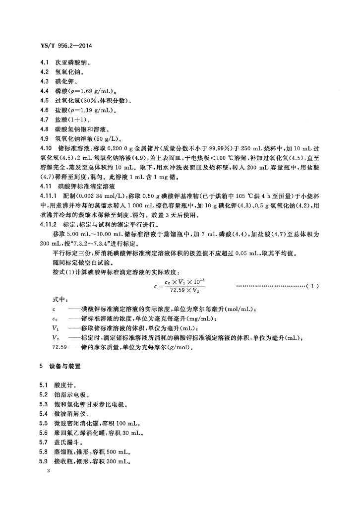 YS/T 956.2-2014 金锗合金化学分析方法 第2部分:锗量的测定碘酸钾电位滴定法