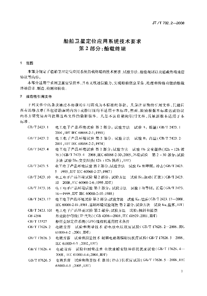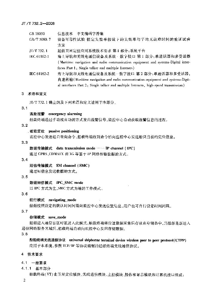 JT/T 732.2-2008 船舶卫星定位应用系统技术要求 第2部分:船载终端