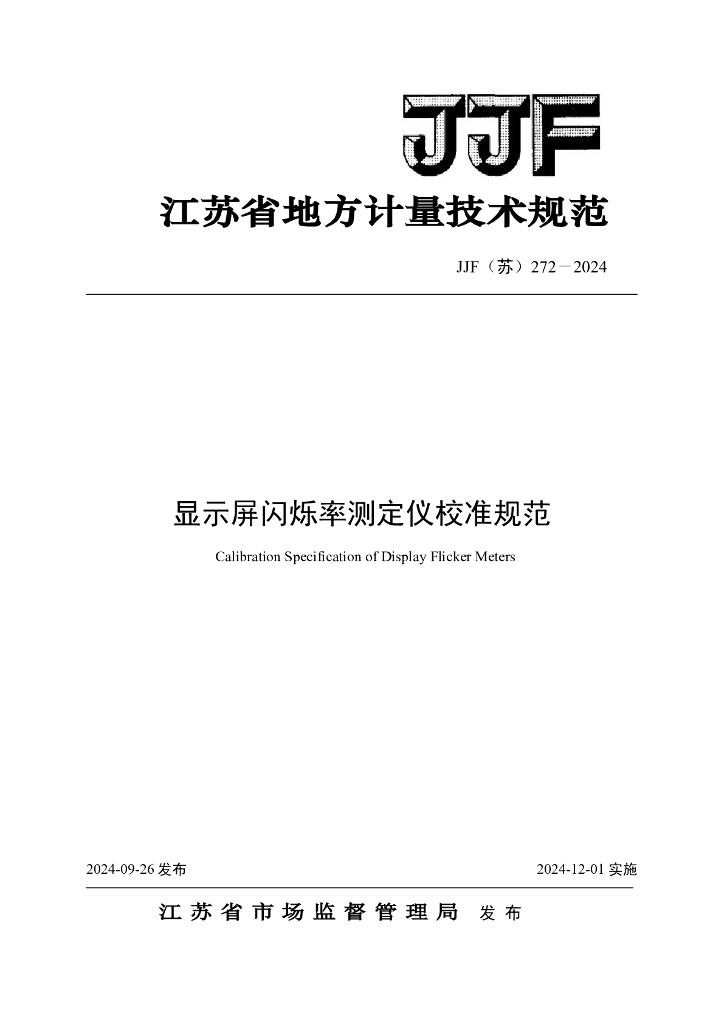 JJF(苏)272-2024 显示屏闪烁率测定仪校准规范